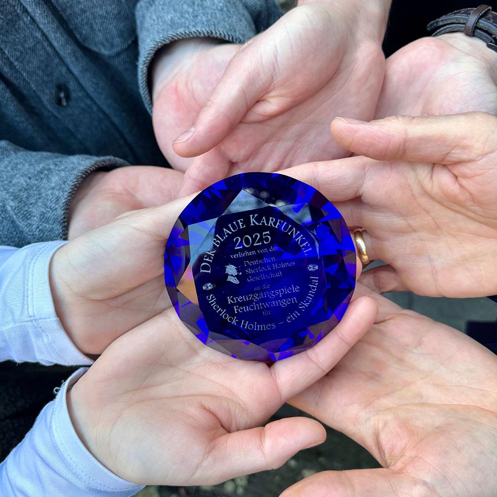 Seit 2012 wird der Blaue Karfunkel von der Deutschen Sherlock-Holmes-Gesellschaft an Autor:innen, Künstler:innen und Verlage vergeben, die sich in besonderer Weise um Sherlock Holmes und das literarische Erbe Sir Arthur Conan Doyles verdient gemacht haben. Die Auszeichnung würdigt herausragende kreative Leistungen in verschiedenen Kategorien wie Literatur & Druckwerke sowie Darbietung und hat sich im Laufe der Jahre zu einem renommierten Preis innerhalb der deutschsprachigen Sherlock-Holmes-Community entwickelt.